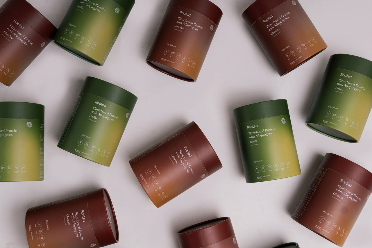 Rooted blends 25g of plant protein with adaptogens and probiotics—nothing artificial, no fillers, no added sugar.