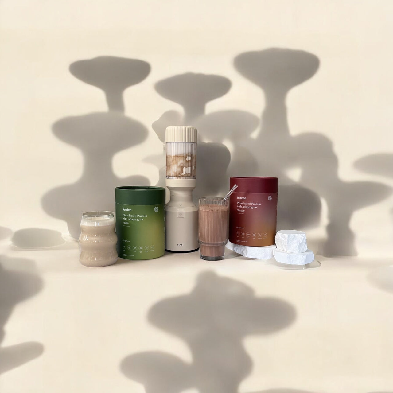 Rooted blends 25g of plant protein with adaptogens and probiotics—nothing artificial, no fillers, no added sugar.